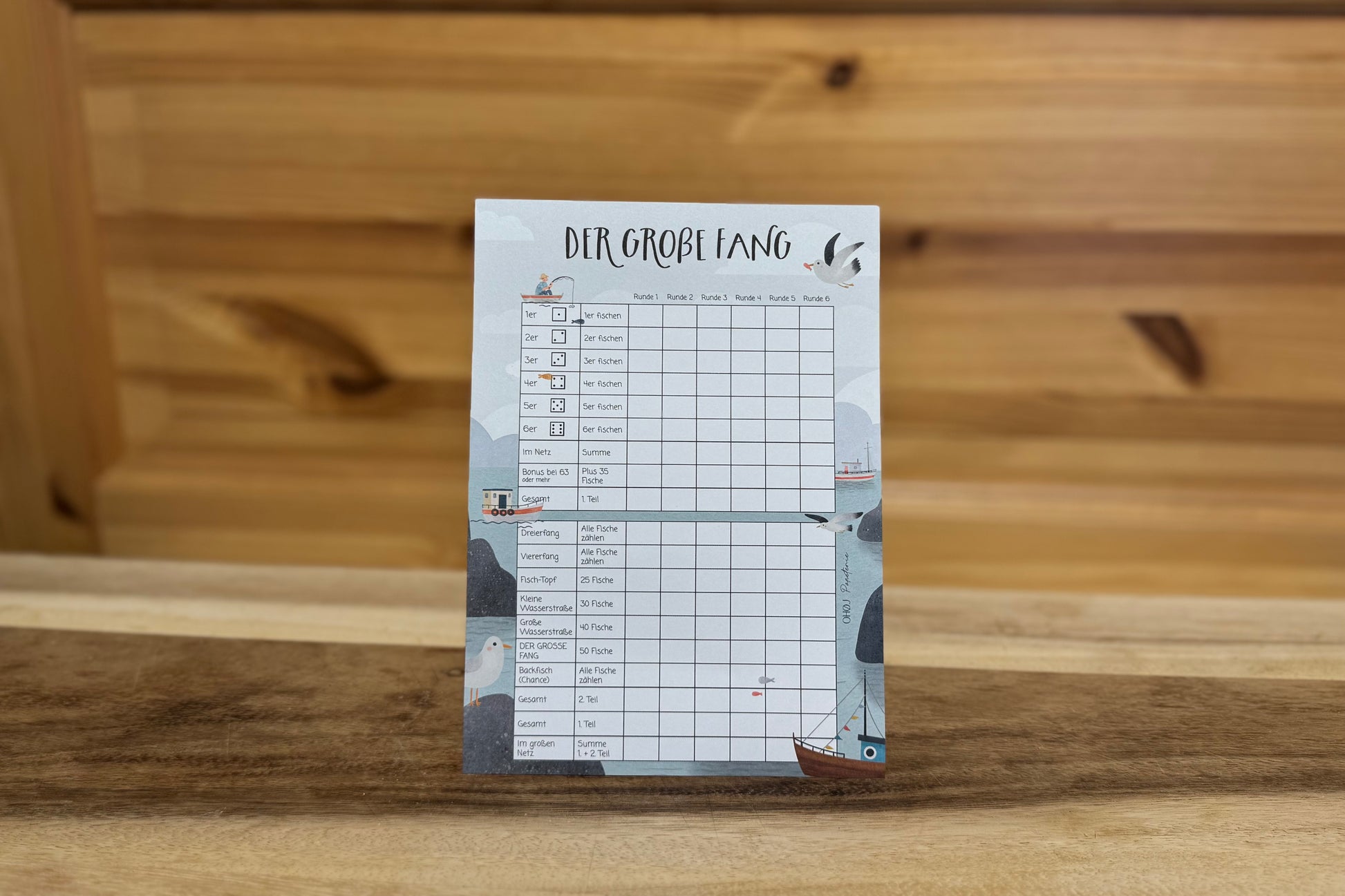 - Den Spielblock mit den Fangtabellen